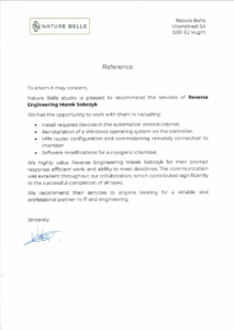 Od projektu systemu sterowania, poprzez prefabrykację szaf sterowniczych i uruchomienia „pod klucz”. Specjalizujemy się również w inżynierii odwrotnej niedziałających lub źle pracujących systemów czy krytycznych komponentów. Wykonujemy profesjonalny monitoring CCTV dostosowany do potrzeb Klientów. Zapewniamy ciągłość produkcji i bezpieczeństwo Twojego przedsiębiorstwa.